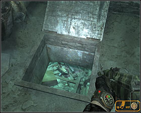 In both cases you'll have to choose a passageway located to the left #1 and then proceed to the next room. Here you'll have to locate an opened hatch #2 and head inside to find yourself standing in the sewers. Make sure to put on your gas mask!