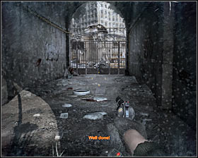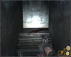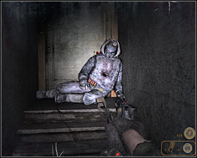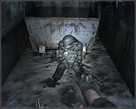 Go through the hole and it won't take long until you've discovered a new body #1. Take standard ammunition, as well as 15 rounds of gold ammunition. Return to the starting point and this time choose a passageway located to the right of the first body #2. You'll have to move quickly here, because the area is irradiated.