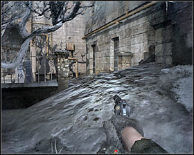It would be a good idea to check the area to your left. There's a new body there #1, however you would have to slide down to get to it and to collect ammunition. If you're not interested in examining the body head forward right away. You must be moving towards buildings seen in the distance #2.