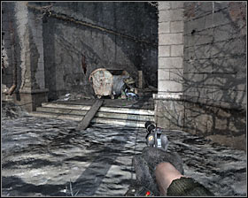 Head forward and you should notice a bigger alley to your right #1. This is where you'll meet Bourbon. Start off by examining a body located close to your ally (ammunition) and then head over to a dead soldier located close to the grating #2 (you might have noticed him in the previous mission). Take gas mask filters, ammunition and two rounds of gold ammunition.