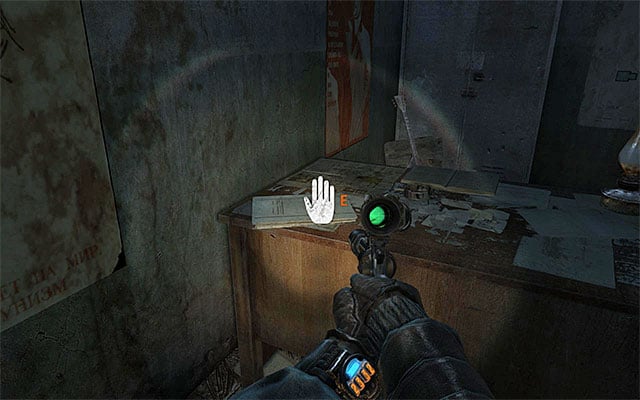 Artyom's diary page. Only after you collect it, take the door to the first larger hall in the armory, because you won't be able to come back here once you progress in the story.