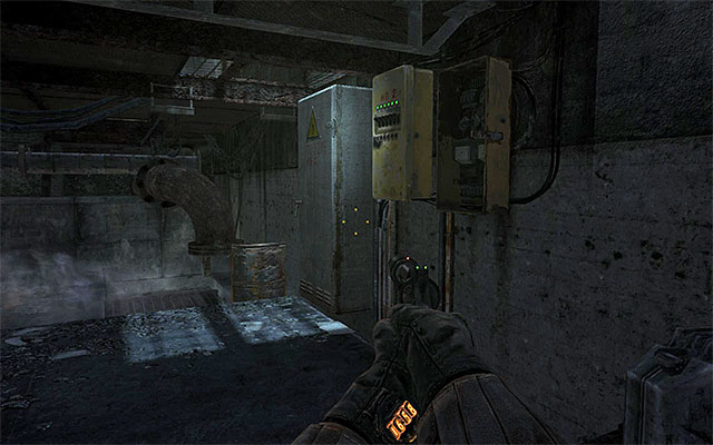 ALL paths described above will allow you to get to the other side of the explored area. Do not hurry with getting there though, but first locate a fuse box shown on the above screen. Interact with it, thus turning off lamps in the room above of you.