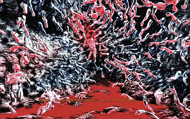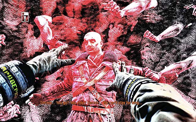 Just like in the case of one of the earlier chapters, you need to make a decision about whether you want to spare Pavel's life or not. If you want to dispose of him for good, remain put in one place after the vision starts (screenshot 1), and wait for it to end. If you want to save him, you need to run up to him.