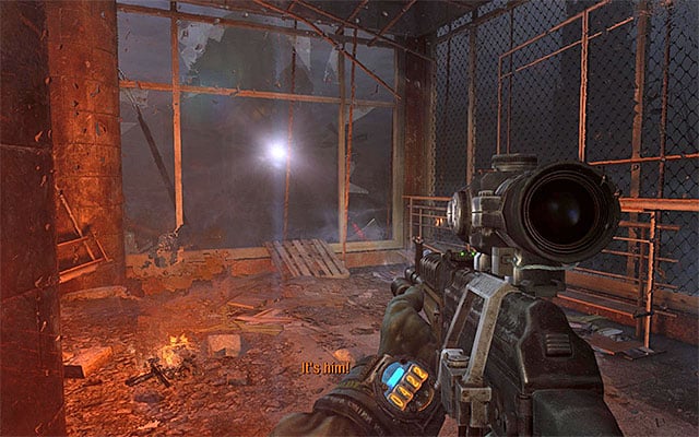 Start by examining the crate near the water and then go to the derelict building shown in the above screenshot, near the starting point. On the first floor, there are standard supplies and also night-vision goggles and an Artyom's diary page. Finally, go to the ground floor and quickly locate an interactive crate. Then, leave the place before radiation kills you.