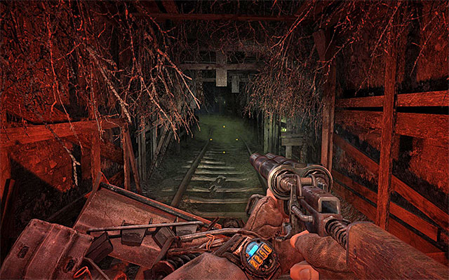 I recommend that you explore the further tunnels on foot, because you are slowly entering the areas occupied by bandits. It is because, even if you shut off the lights, you would be easily recognized anyways (what is even more the appearance of an empty car that they don't know will also alarm them) Go straight ahead and search the two skeletons on your way. Just like before, I recommend that you also search the optional areas so, at the first opportunity, take a turn to the right and blow out the oil lamp.