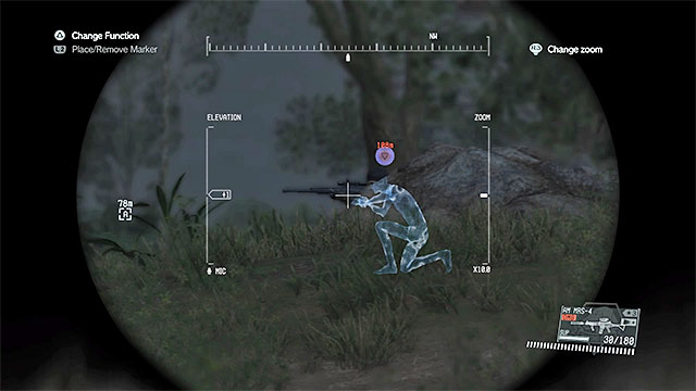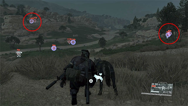 Description: Explore the area to the west of Ditadi Abandoned Village. There are two APCs parked in this area, but don't hurry with getting to them, because several snipers are located on nearby hills. Get rid of them first (the binoculars and D-Dog will make it easier for you to find them) and when they're gone, Fulton or destroy the armored vehicles. Lastly, deal with the regular soldiers which shouldn't be a problem for you. There are eight targets in total to neutralize.