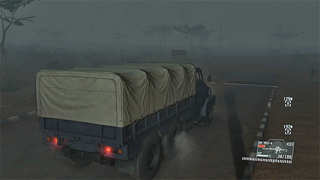 If you did not reach the airport on time, the truck joins the convoy and heads towards Kiziba Camp. It is not a good idea to attack the convoy along its route, because you would have to destroy quickly two APCs (e.g. using the rocket launcher) and stop the escaping truck itself (by neutralizing the driver). Instead, it is better to wait for the convoy to reach its destination and only then, sneak up to the truck and fulton it, or get into the cab.