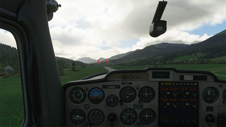 1 - steer so that you fly into a virtual gate tunnel Constantly adjust the engine power and even the trim to fly at a right track at 60 knots without much effort. The flaps should be at least half - forward, and if you're in another plane, release the landing gear (G).
