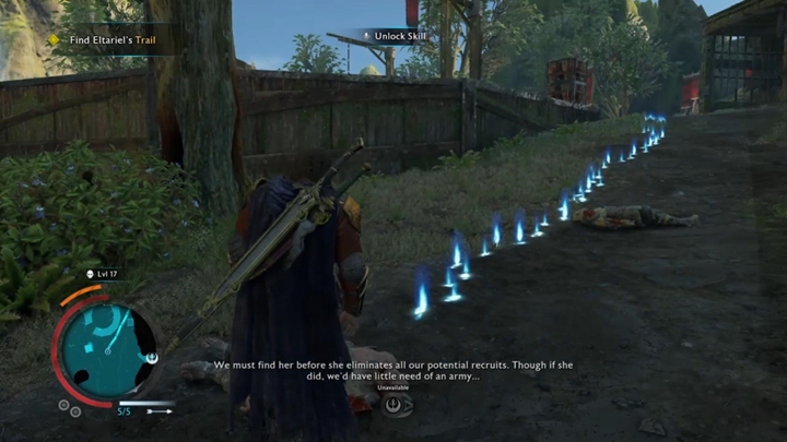 - When you start the mission, you can notice a lot of orc bodies. This means that Eltariel is in the area. Move forward and you will watch a cut-scene during which the elf deals with a Nazgul. Speak with her and go to an orc camp.