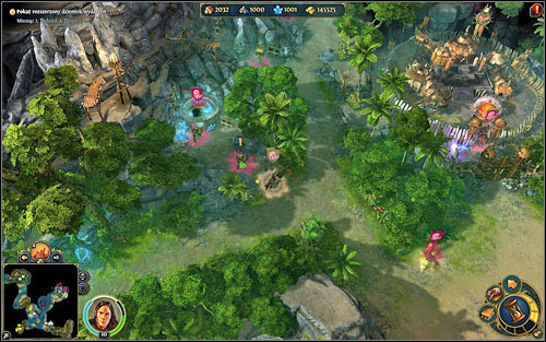 When one of those quests ends, we should prepare to the final encounter. Now we should do the quest More Army thanks to which we'll be able to recruit jaguar warriors and cyclopss. When we finish arming, we can stand against enemy's leader whose castle is on the unavailable island on the north (M3,7). To reach it, we have to go through the portal M3,X2 from which enemy will attack us. After moving through it, we'll see a dense jungle. After few turns hacking through on the south we'll reach our opponent (M3,7) who has the best Stronghold's troops in army.