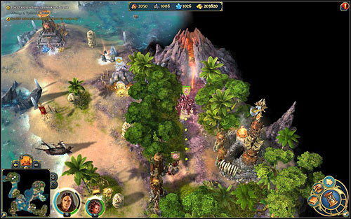 To find a leader of one-eyed we need to sail to the island of western archipelago (M3,9). There, nearby the volcanic top, we'll find Acamas, powerful, black skinned cyclops with many of his fellows. Retreat would be a flaw on our honor so we should prepare to uneasy battle.