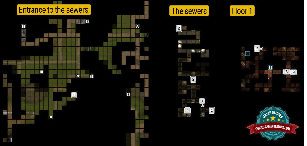 The problem is that, however, the city gates are shut and nobody is allowed in. This is not a problem, though, because there is a sewer entrance next to the city. (1).