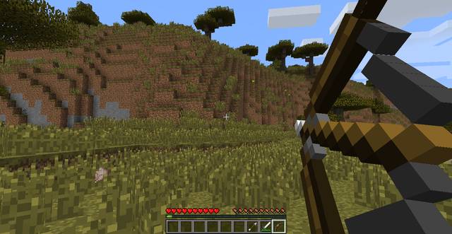 Besides the basic sword, the other standard weapon in Minecraft is the bow. Arrows are cheap to craft and they can be collected from the skeleton-bowmen that you kill. The game takes the flight physics into account so, with increase of distance comes decreased speed and the arrow falls to the ground. That is why, why aiming at a long distance, you also should take that into consideration. Bows can also be enchanted, to make them deal more damage. The strength that you use to pull the string influences the distance that the arrow will reach, and also the energy of the impact so, also the amount of damage dealt.