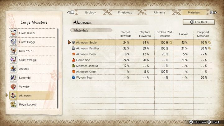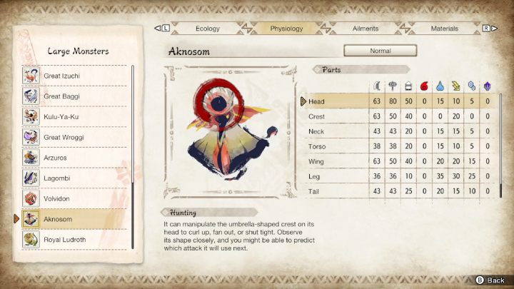 The following page of the Monster Hunter Rise guide contains the most important information about the monster called Aknosom. You will learn about its weak spots and elemental vulnerabilities. At the very end, we listed the rewards for defeating Aknosom and some tips on how to fight this monster.