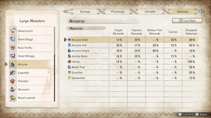 - Arzuros loves honey! If you have honey in your inventory, the monster will steal it from you and immediately start consuming it. This makes it vulnerable to your attacks;