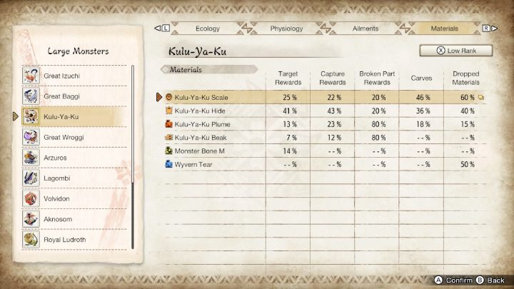The following page of the Monster Hunter Rise guide contains the most important information about the monster called Kulu-Ya-Ku You will learn about its weak spots and elemental vulnerabilities. At the very end, we listed the rewards for defeating Kulu-Ya-Ku and some tips on how to fight this monster.
