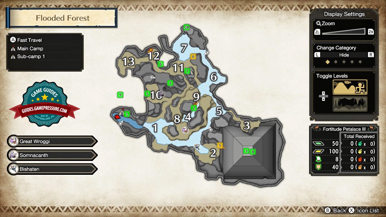 Monster Hunter Rise: Old Messages - Flooded Forest Map, collectibles