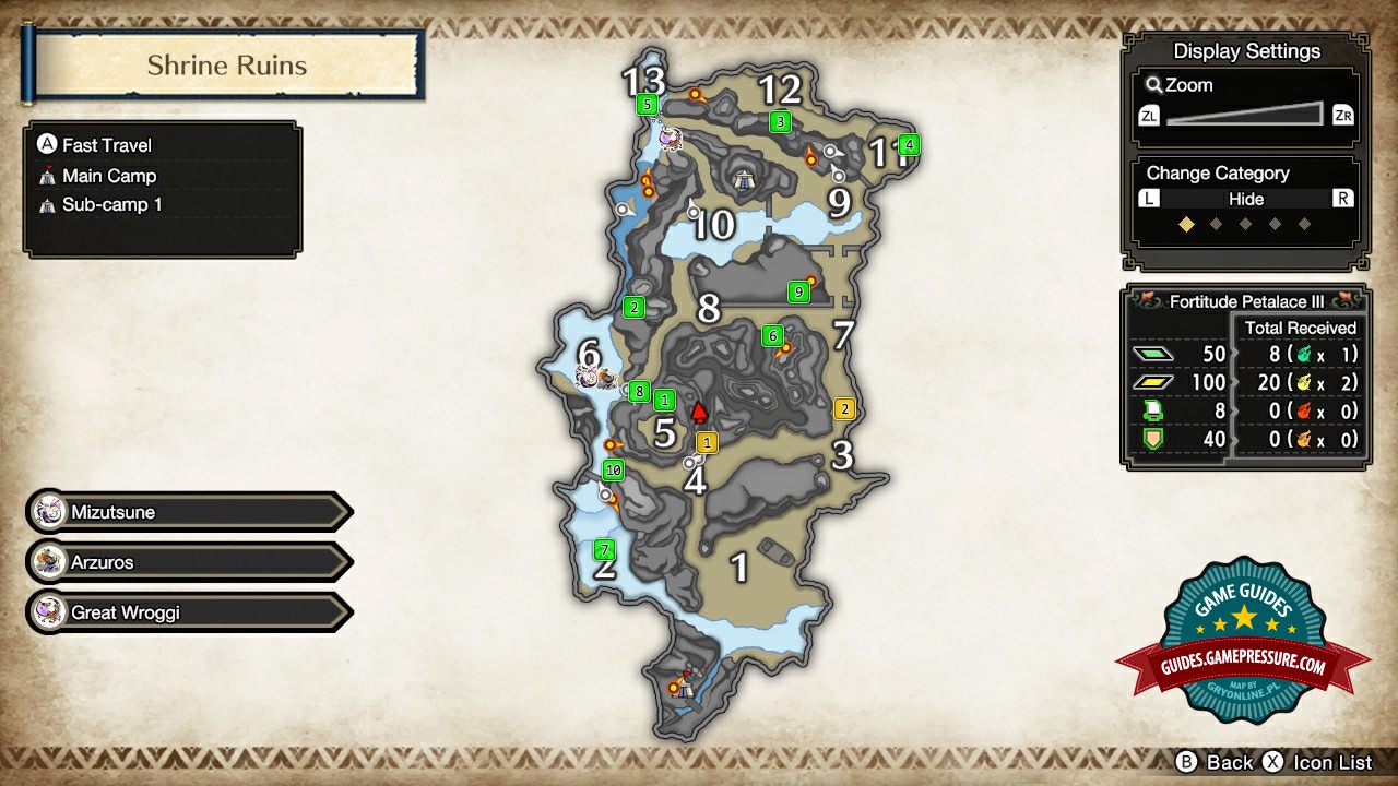 Monster Hunter Rise: Old Messages - Shrine Ruins Map, collectibles