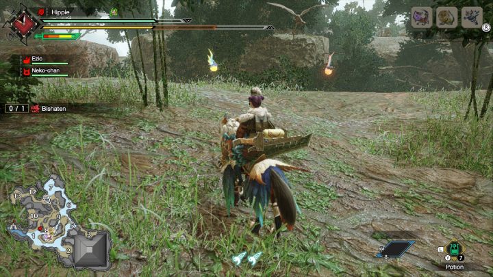 The exact location of the Spiribirds can be found on the map of the hunt area in the appropriate tab. That will allow you to better plan your path and collect as many creatures as possible to improve your stats before joining the fight.