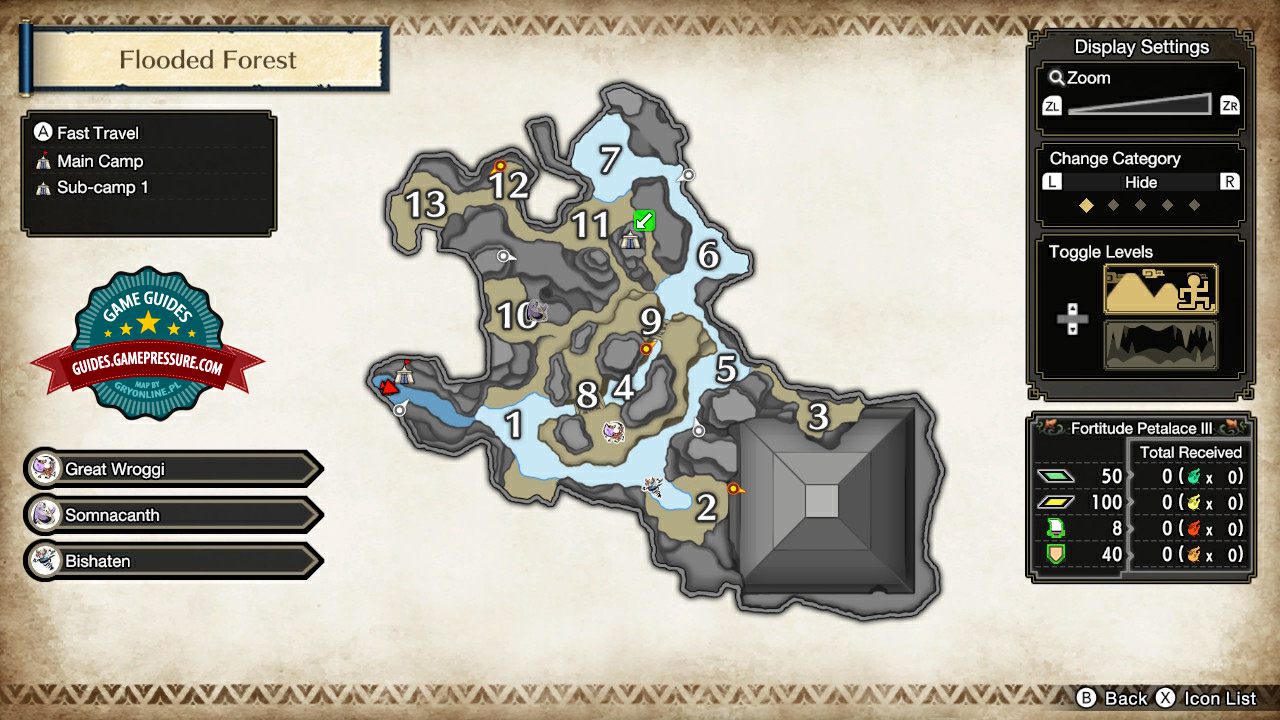 Monster Hunter Rise: Sub-camp - Flooded Forest Map, collectibles