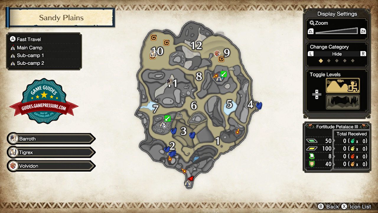 Monster Hunter Rise: Sub-camp - Sandy Plains Map, collectibles