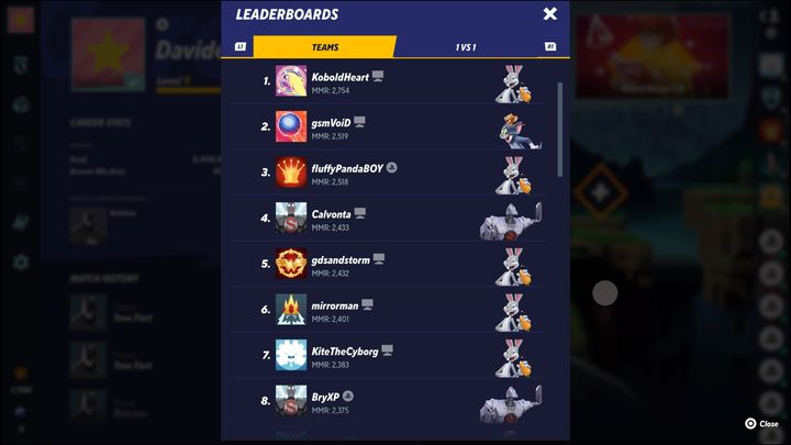 How good this character is is evidenced by the results of the best players. The photo shows the top eight players in 2v2 mode. As many as five out of eight are Bugs Bunny users.