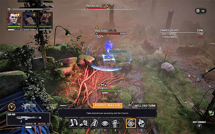 All new opponents are deployed around the gas station. Pod Tank is among them and we suggest sneaking up with Magnus near this powerful mutant in order to use Puppeteer's ability.