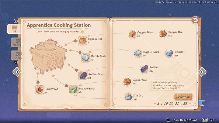 After collecting all the required materials, approach the Assembly Station and activate the blueprint. Once the device is ready, you can start with more advanced cooking.