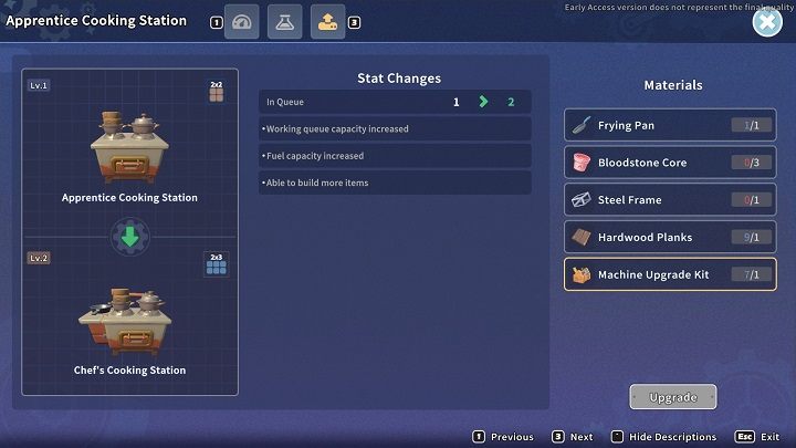 - How to upgrade Apprentice Cooking Station to Chef's Cooking Station?