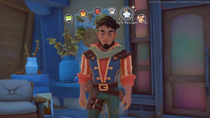 - Talking to Owen and Mebel - if you reached a certain level of reputation with them, they will share their recipes. To get access to the recipes, simply click on Talk Recipes after interacting with these characters.