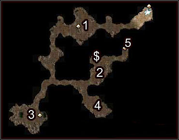Glek (1) will turn out to be quite a peaceful goblin and will tell you that you can have the ring that you seek if you help his people with a little spider problem. Just go to the South (2) and defeat some arachnids. It should be no problem for you.