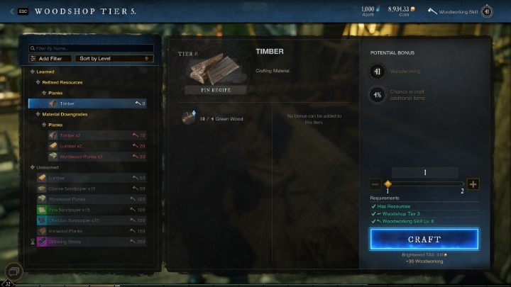 Woodworking in New World refines wood resources needed for crafting furniture and some weapons. This page of the guide explains where to refine wood and how to grow develop Woodworking quickly.
