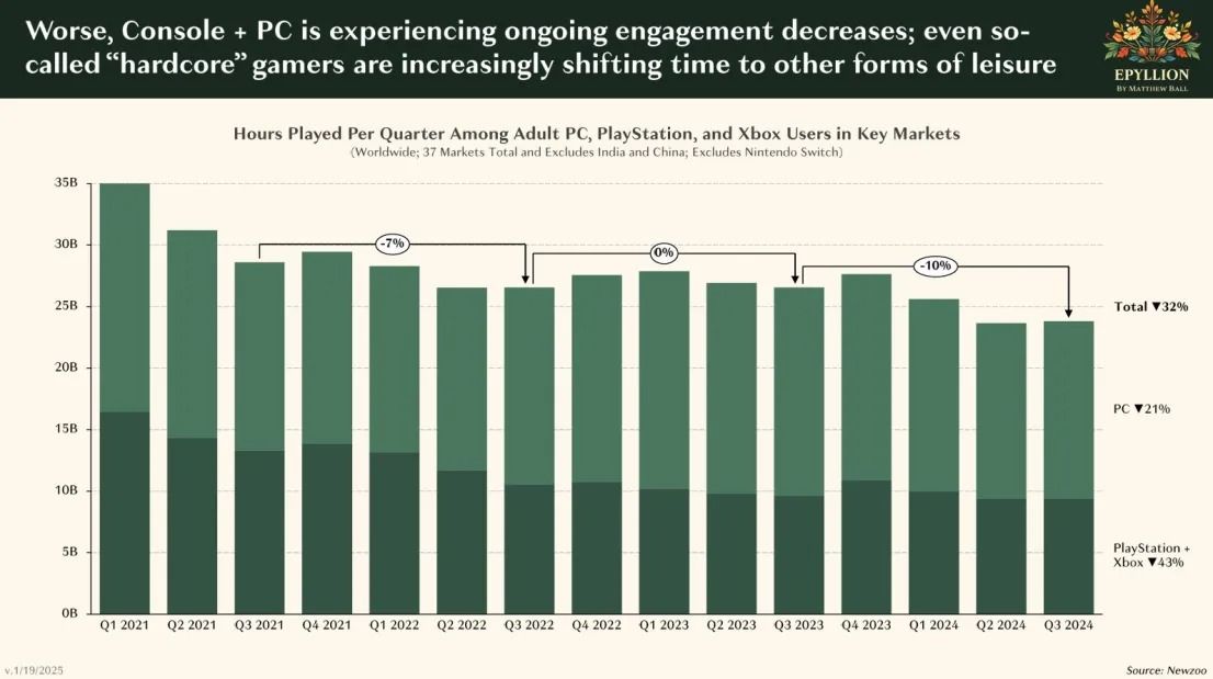 The gaming industry has reason to be concerned. Data shows that gamers are playing less and less, even those who can be described as hardcore.
