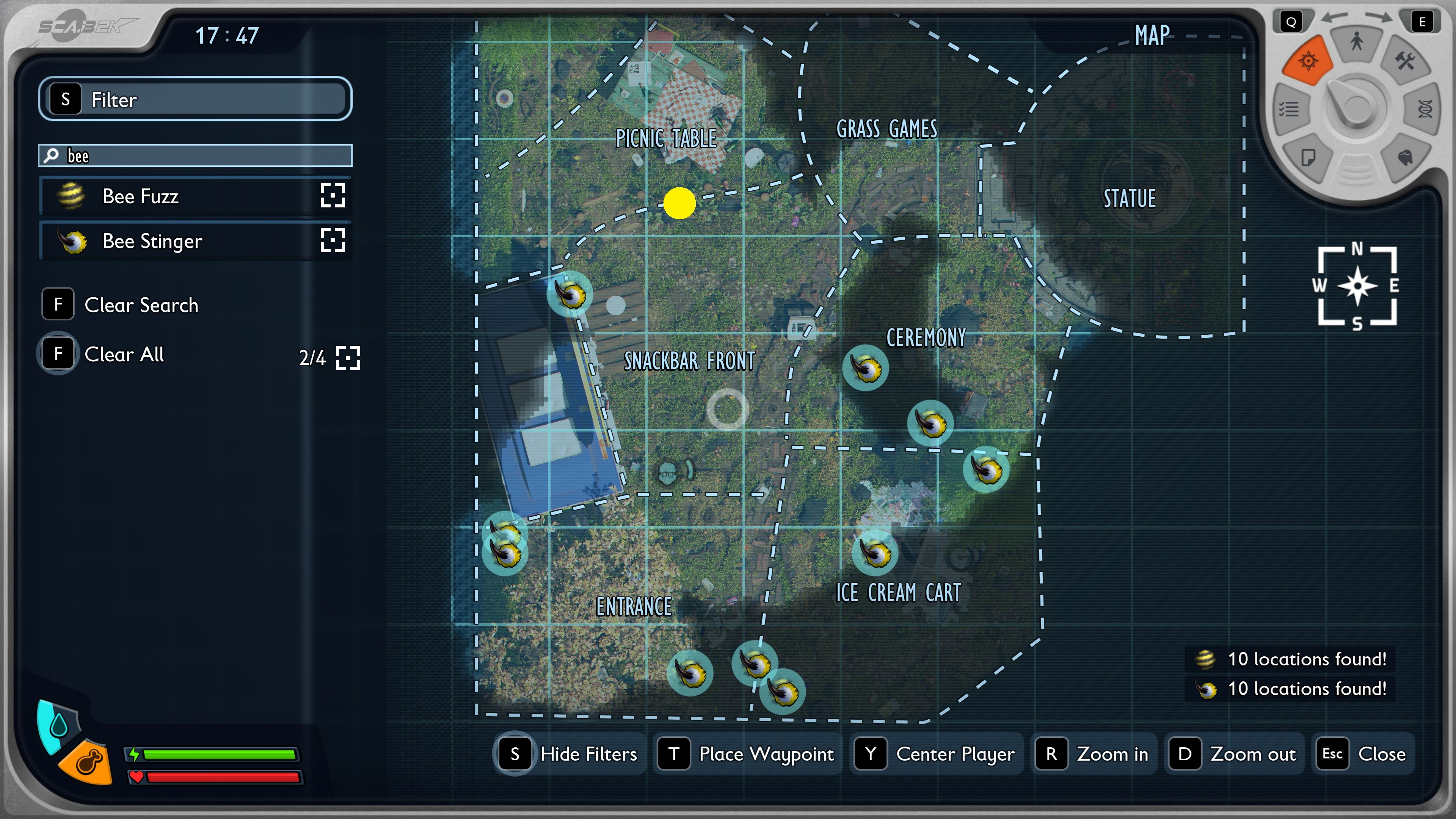 Bees are peaceful creatures and quite cute. I even have written about them in my opinion on Grounded 2 – they made such an impression on me. However, for those people who fighting with a spear, they are priceless, but in a more sinister way. Bees are the source of Stingers and Fuzz, which are crucial to craft a tier 2 weapon called Stinger Spear. So, where to find these creatures? Let me show you on the map.