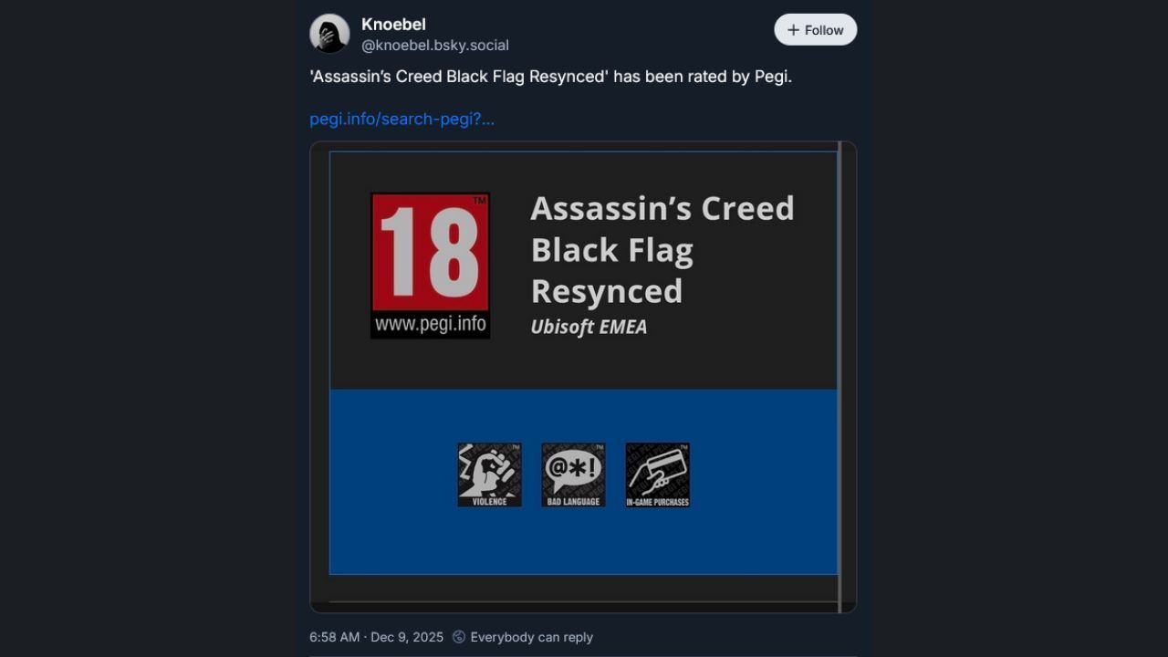 Today, just a few days ahead of one of the largest gaming showcases of the year, a potential leak has revealed more about the long-rumored Assassin’s Creed 4: Black Flag remake. Thanks to a PEGI rating spotted by Knoebel on BlueSky for sharing a screenshot, because now, for some reason, trying to follow the link to the PEGI listing results in an error. It is unlikely that Ubisoft has the power to take a site down like that, but as recently as a few months ago, they reportedly threatened to sue a voice actor for speaking too much about the remake. Ubisoft has also had a rough year, with several of the developer’s most popular franchises, including Assassin’s Creed, being pulled together to form a new subsidiary with Tencent. But it almost feels impossible to ignore now that this long-rumored remake could finally be revealed during this week’s Game Awards showcase.