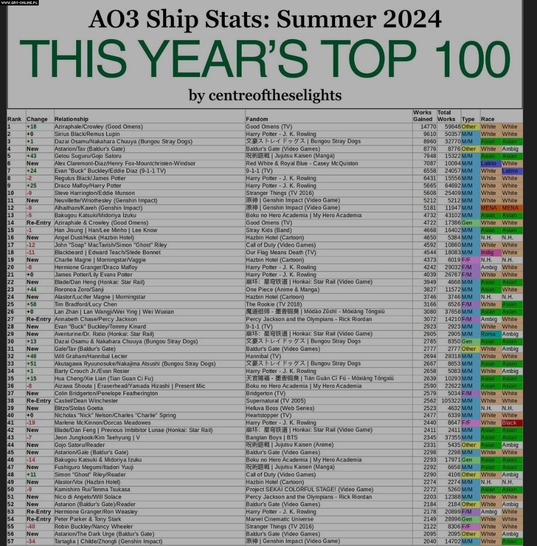 The results of the summer analysis of stories on AO3 became the topic of the latest discussion on Baldur Reddit. According to the list below, fanfics starring Astarion and Tav (the player's default character) were in fourth place in the popularity ranking. As a new addition to the list, the ship has received 8776 individual stories over the year.
