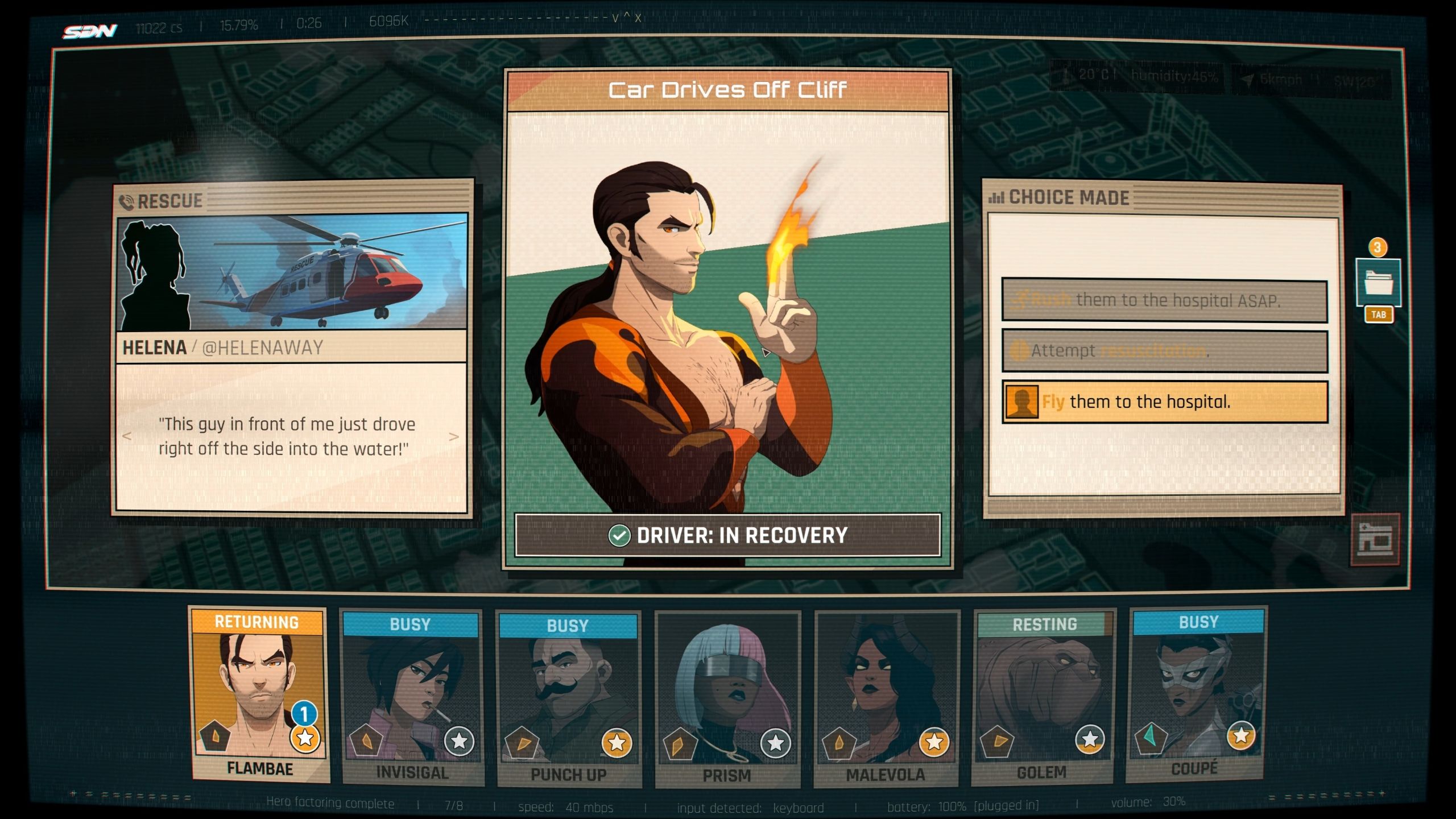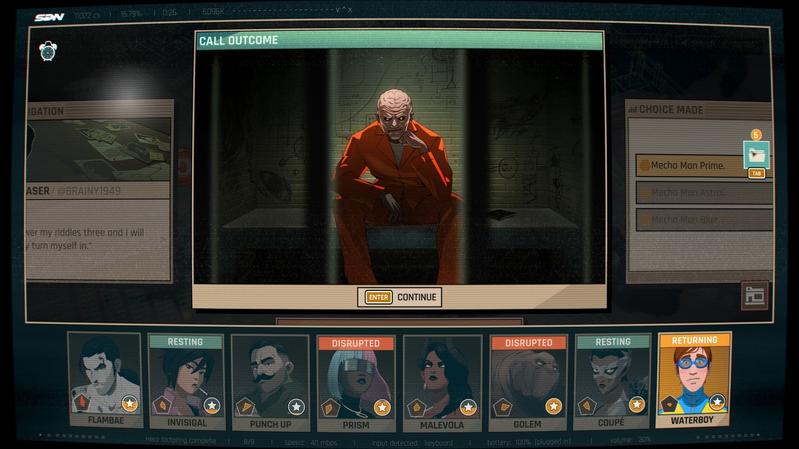 Dispatch Episode 4 Restructure marks the middle of the story. In this “chapter,” we have to face the outcome of the choice from the previous part. Moreover, we will have to hire the new hero in the place of Sonar or Coupe. Finally, it is also important for our romance, as we will be able to go on a date with Blonde Blazer or Invisigal.