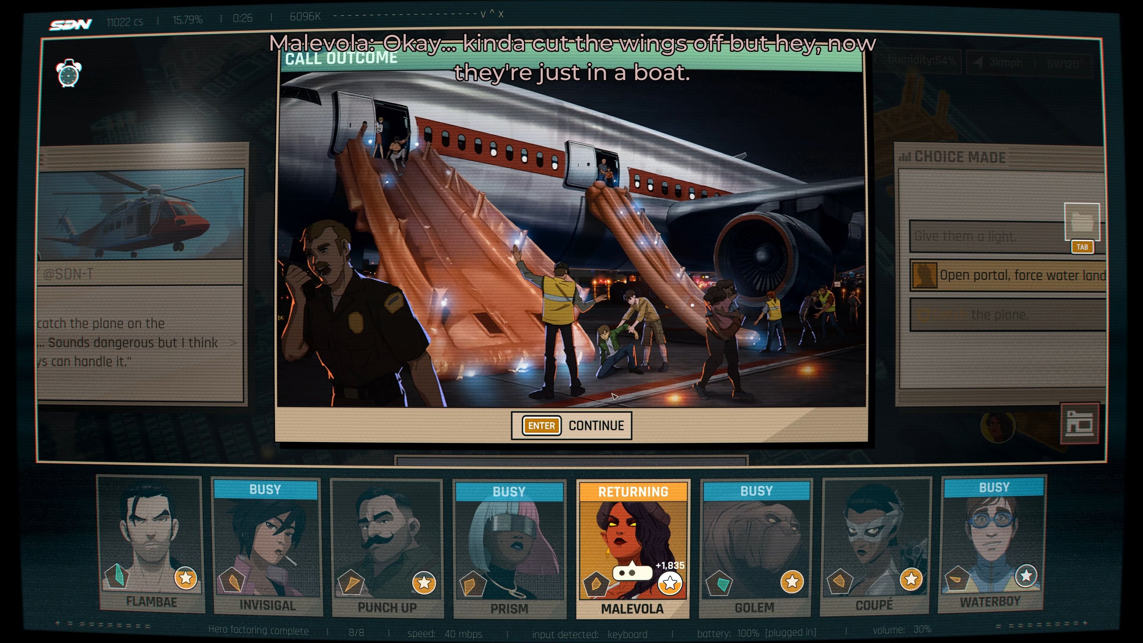 The long term outcome is still unknown. However, if you tell that you are a Mecha Man, Flambae will try to kill you. Fortunately, you will be protected by the team. However, a fiery guy will not be during the next Dispatch in the next Episode. The rest of the team will bond. At the beginning of the next chapter, during the test of your armor, the whole team will be watching it. Even Flambae will be back at the end of the Episode 6, and it seems that he will come to terms with the news and you will be able to work together in the future. Though, he will hit you.