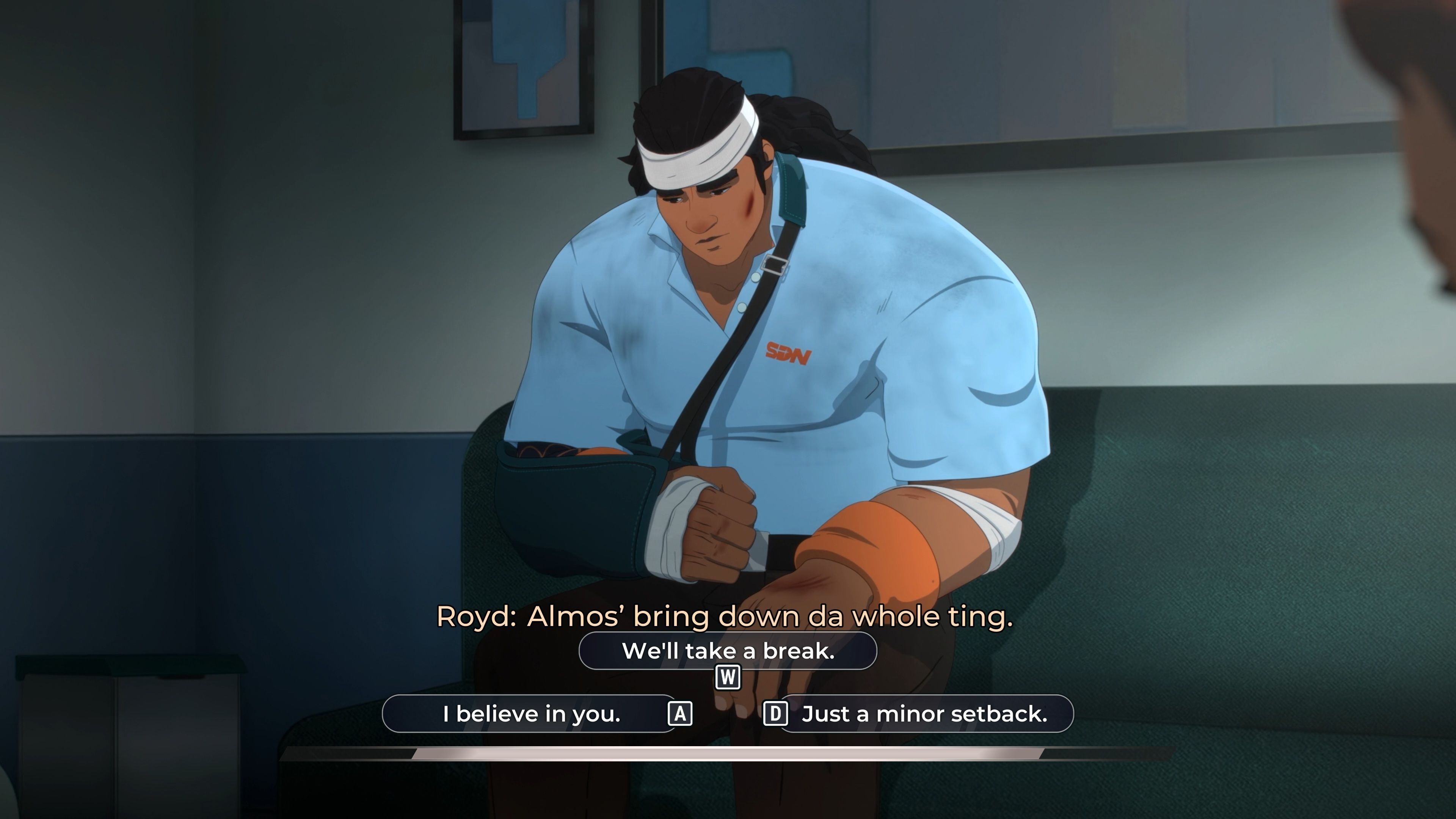 Choice: Your next conversation will be with Royd. He is devastated after the test.