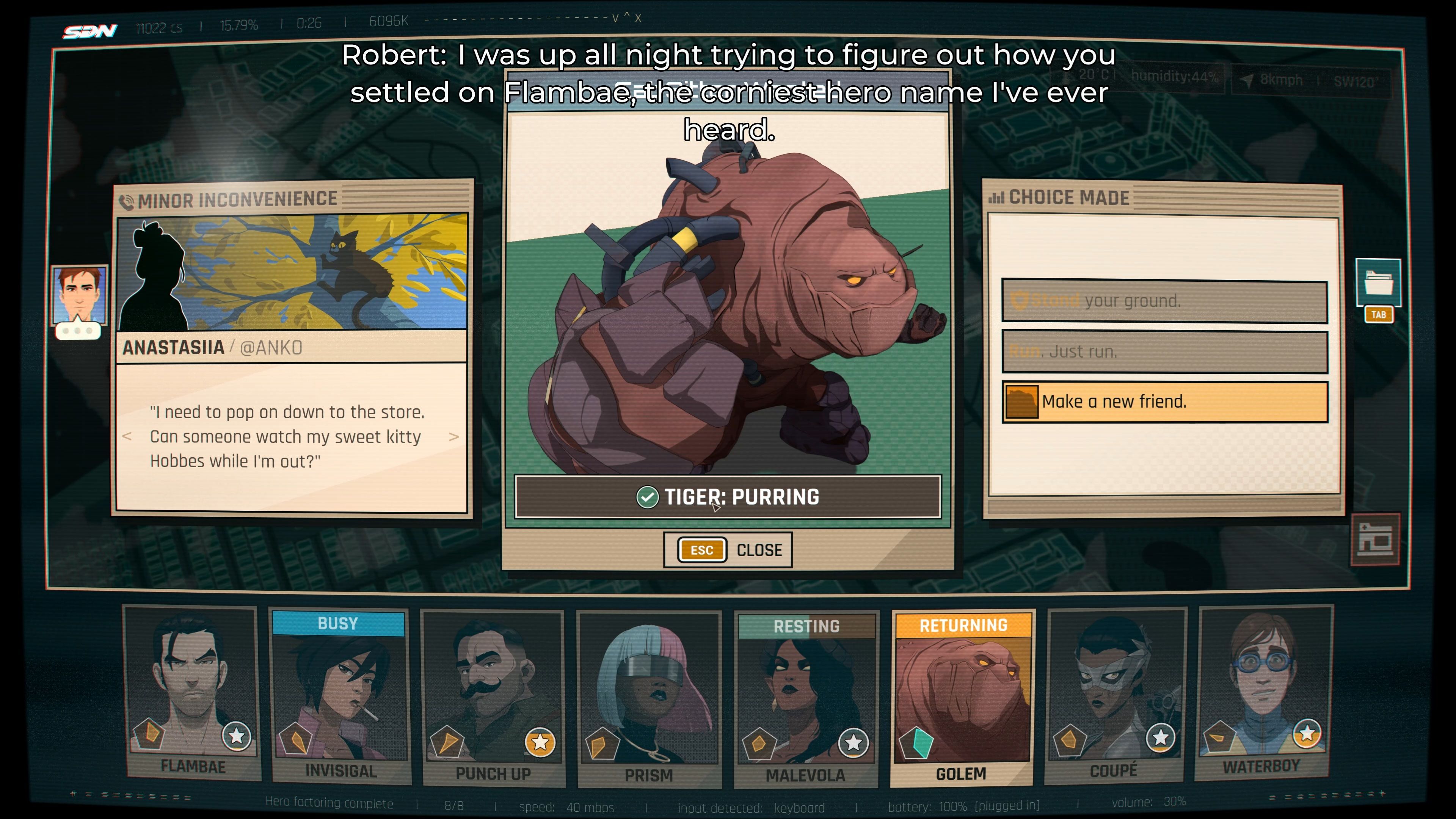 There is only 1 Dispatch shift this time. And you start it in the middle. Some investigations are already ongoing. So be quick. If you have revealed that you are a Mecha Man, Flambae will not be there to help you.