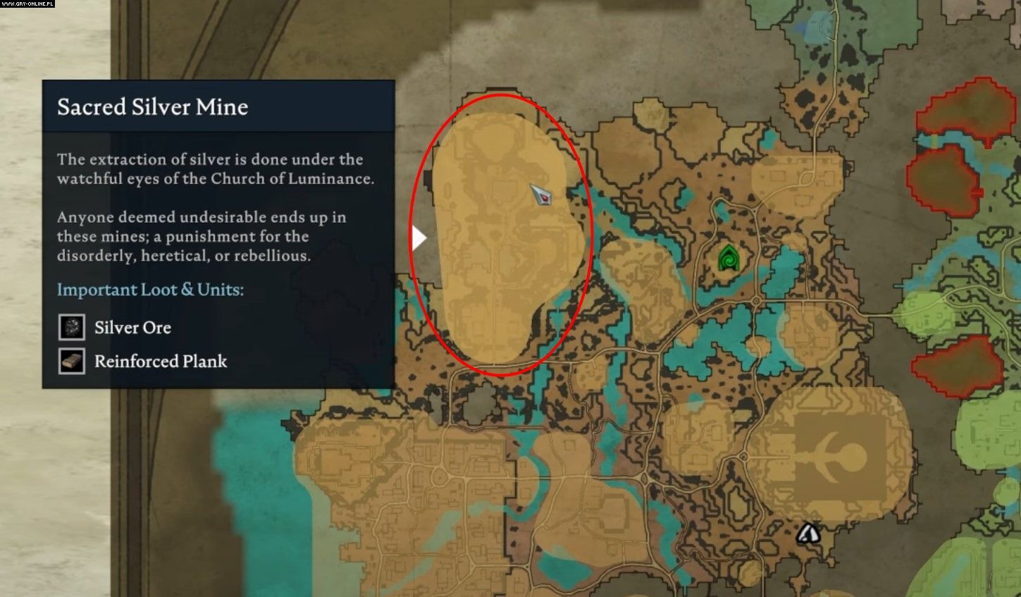 Even though the Silver Ore material can be found around in the world, the Sacred Silver Mine is the best place to farm it. The ore is required to produce Dark Silver Bar (4x Spectral Dust, 20x Silver Ore), which is further used to craft Dark Silver gear. To be able to extract Silver Ore from Silver Ore Nodes, you have to be equipped with at least Iron Weapon. Bear in mind that carrying around the Silver Ore can damage your character so make sure to prepare Silver Resistance Brews or Potions. Sacred Silver Mine is also a good location to loot Sulphur Ore as well as Reinforced Planks.