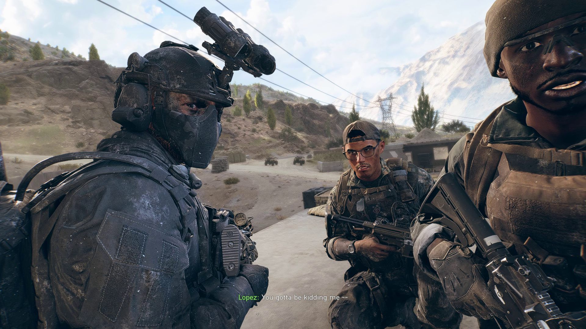 And here it is – mission 8. We are in beautiful, mountainous Tajikistan, by a picturesque lake around which Pax Armata has its bases. This time, we play as Gecko, a sniper equipped with a drone among her gadgets, capable not only of marking enemies but also dropping bombs on them. Moreover, there are a few chances to ride ATVs through the valley, which is a lot of fun even without any shootouts. The map is halfway open. In its first stage, which involves destroying enemy radars, there are a multitude of options for completion. We can decide which radar to take out first and whether we go in with a bang or take it slow and quiet to keep backup from showing up. I figured that since it's BF, there has to be as much chaos as possible, and since there were a lot of vehicles on the map, I had an excellent time causing destruction. There are tons of enemies, and they often overwhelm us with their attacks, especially since there are only four of us here. But honestly, it's a blast.