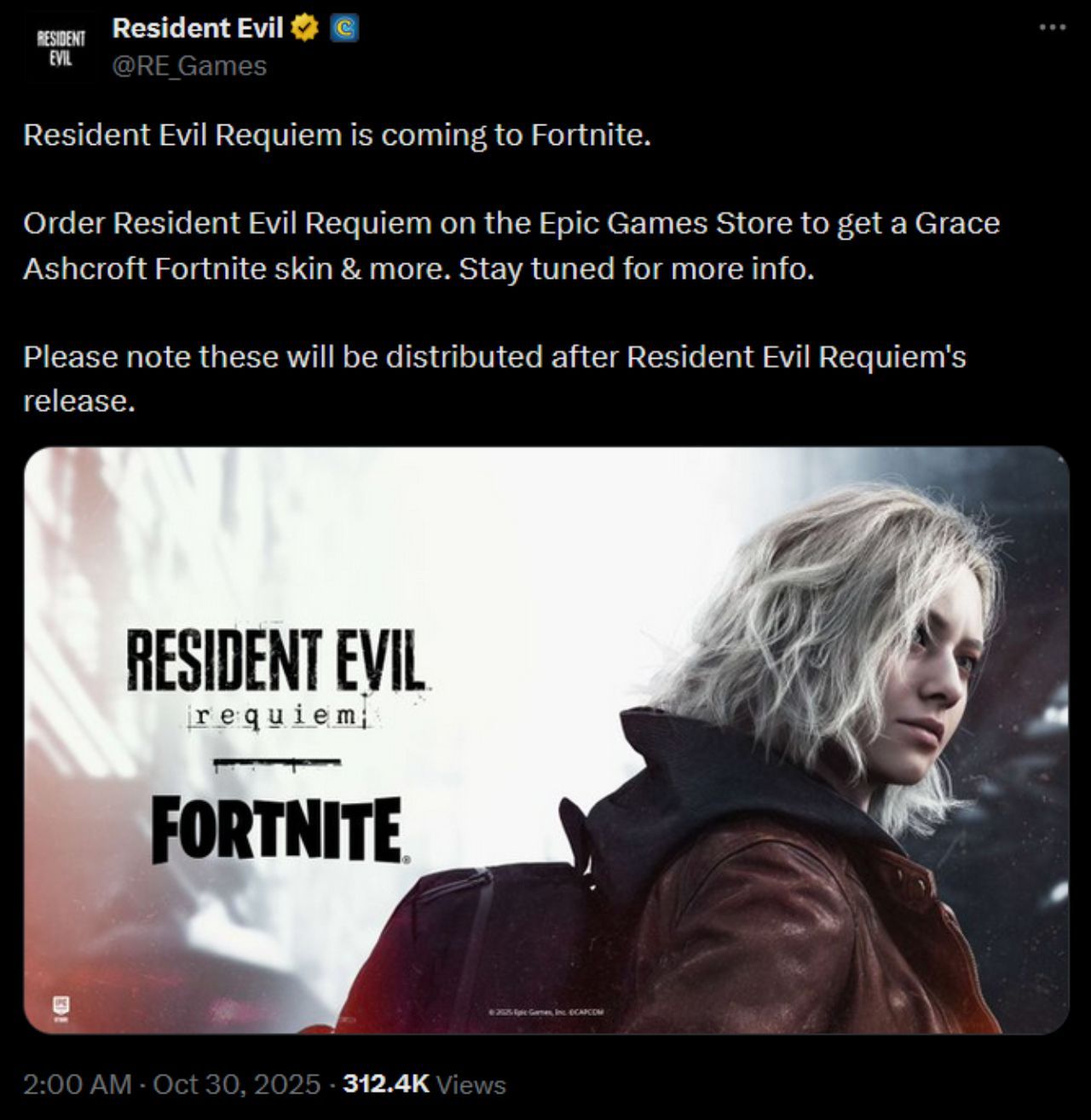 Today, Capcom announced on X that Resident Evil Requiem skins are coming to Fortnite, but there’s a little condition. To get them, you’ll need to buy Resident Evil Requiem through the Epic Games Store first.