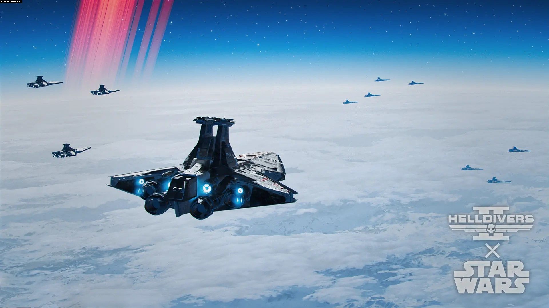 In this set of mods, the Helldivers 2 Super Destroyer is swapped out for a Star Wars Star Destroyer, and the Pelican-1 shuttle is replaced by a Republic Gunship. While players can't fly starships in Helldivers 2, they do gather on a Super Destroyer between missions. This mod allows you to immerse yourself in the Star Wars universe by replacing it with a Star Destroyer, one of the most iconic ships in the franchise.