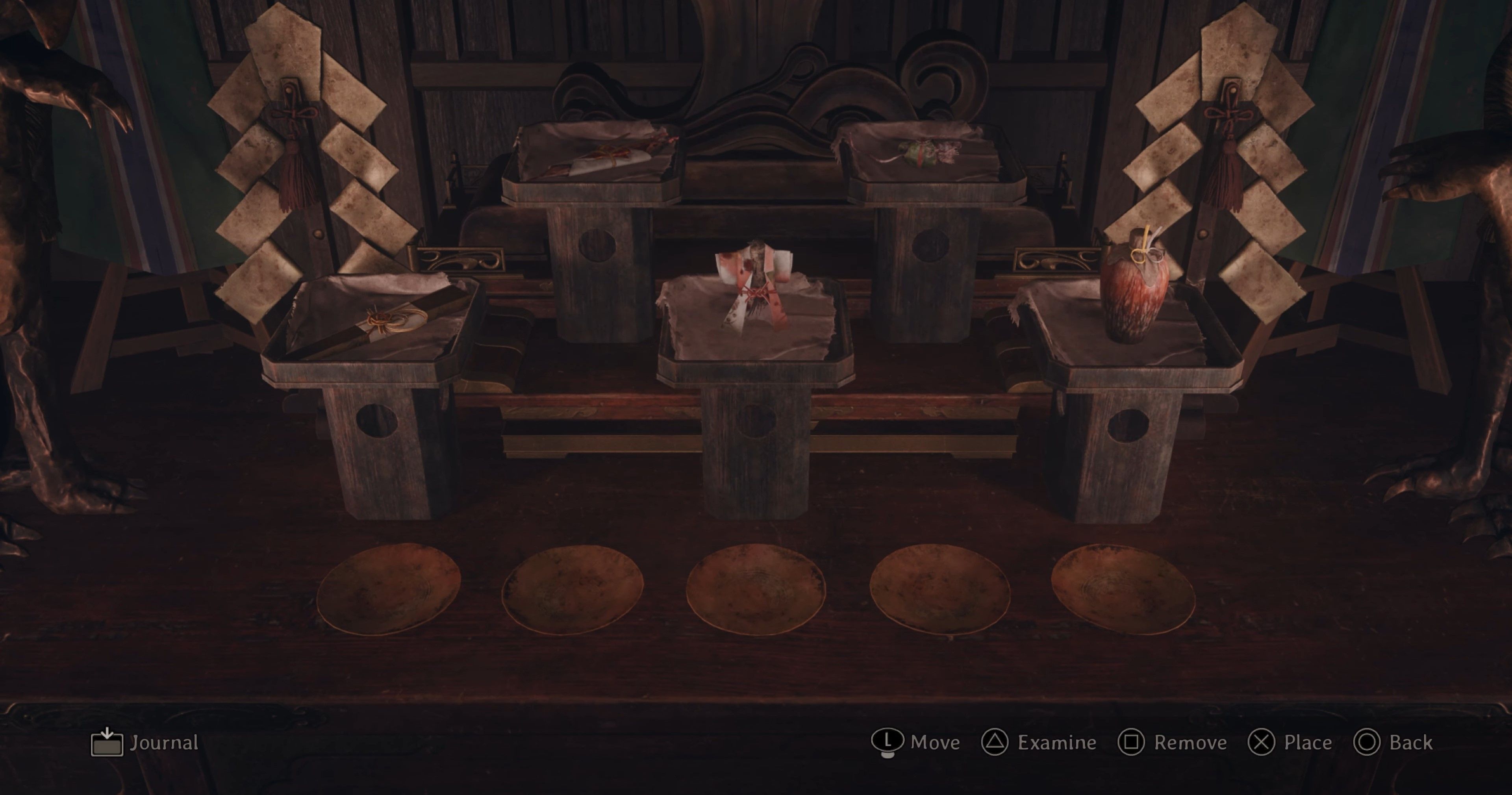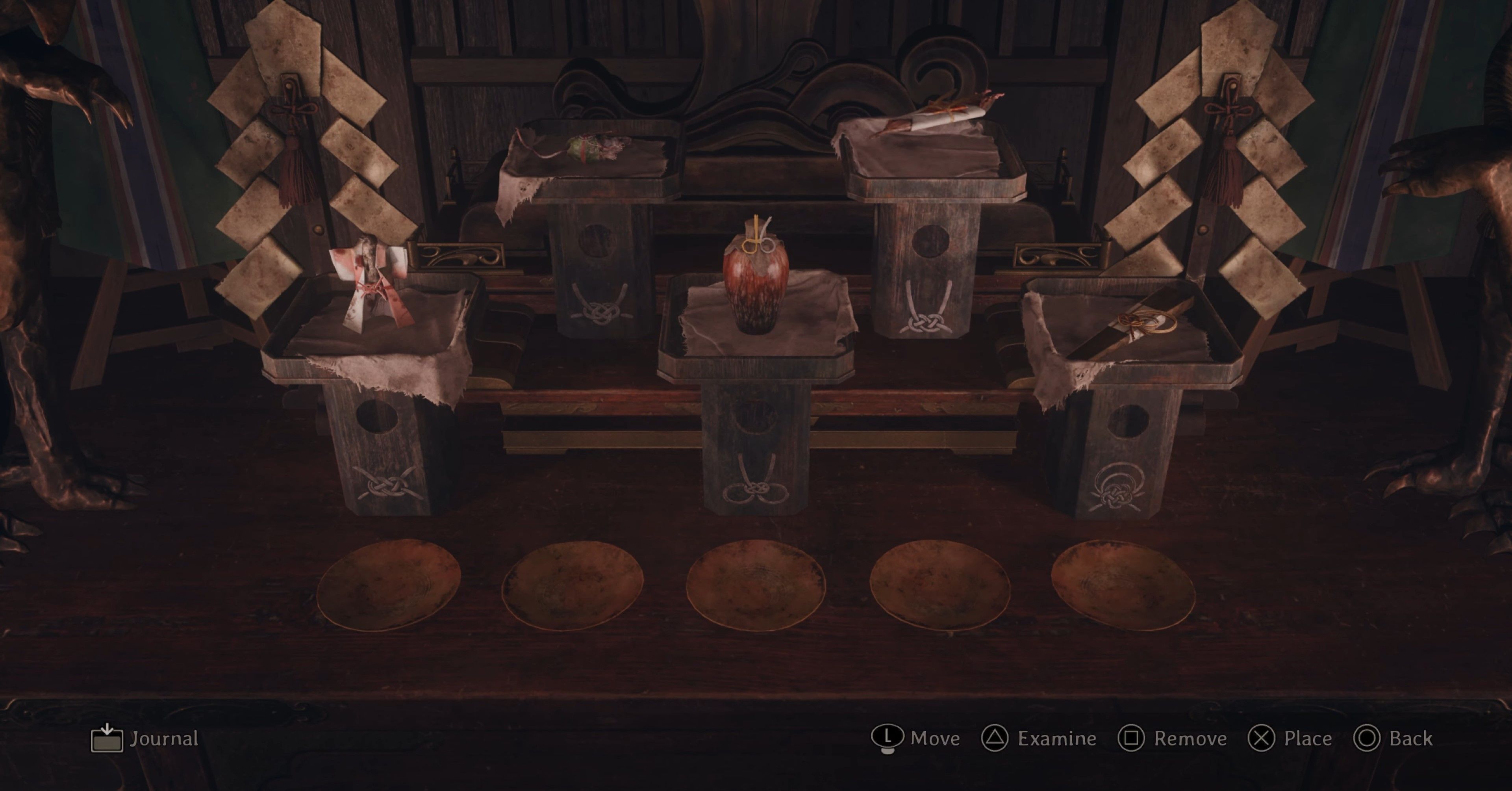 After entering Dark Shrine for the first time, you will see an altar with five different offerings. You must place each of them on a proper podium to complete this puzzle. The most important thing here is symbolism. Each podium has a certain symbol on it. In turn, each item has this symbol emphasized to a greater or lesser extent. Only on the Lost in the Fog difficulty level, the symbolism is contained in the text.
