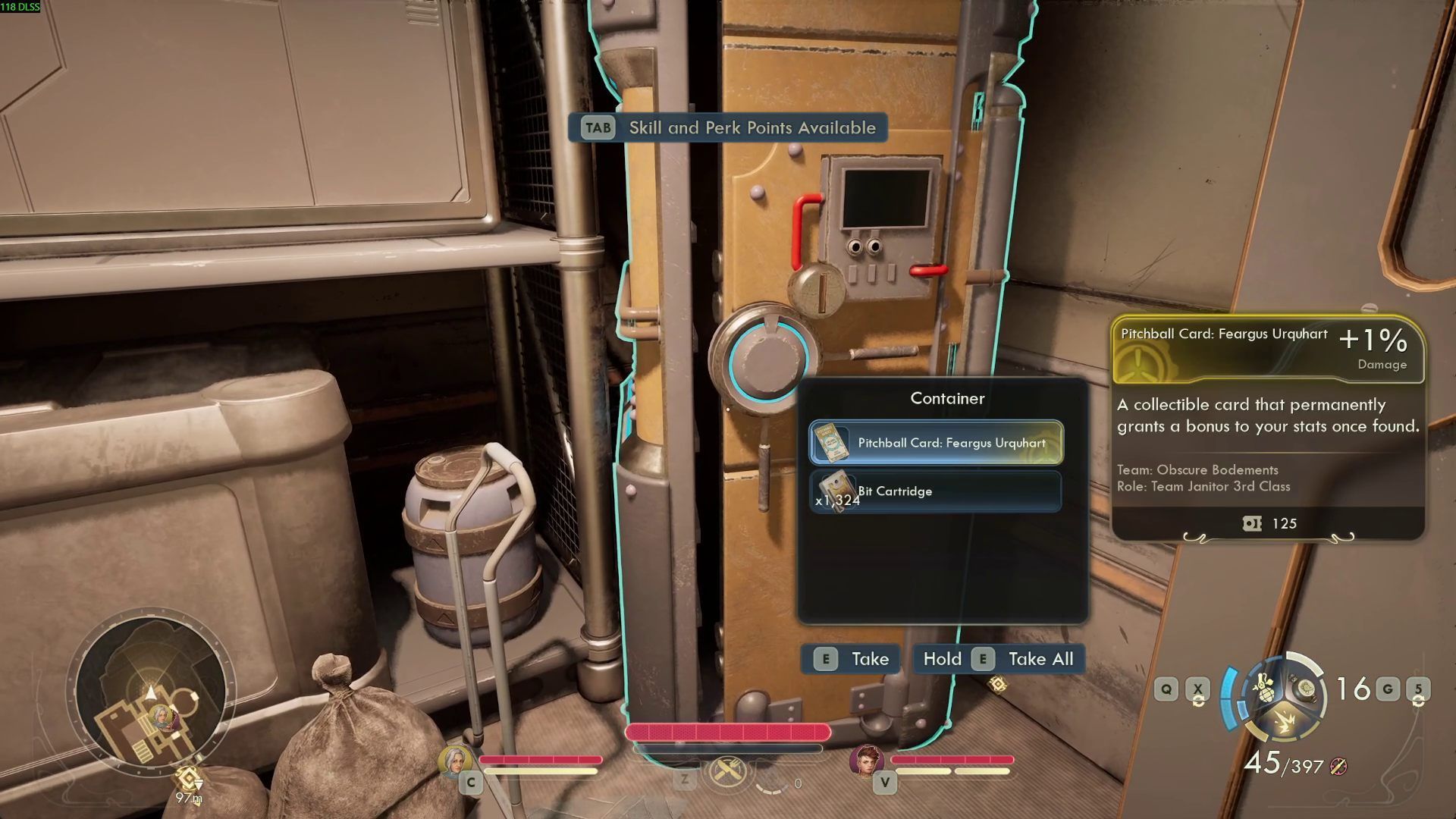 The correct combination activates the passage to the right of the terminal. Inside, you'll find a safe with a substantial amount of money and Pitchball Card: Feargus Urquhart. This special collectible provides a permanent bonus to stats - in this case, a 1% bonus to damage.