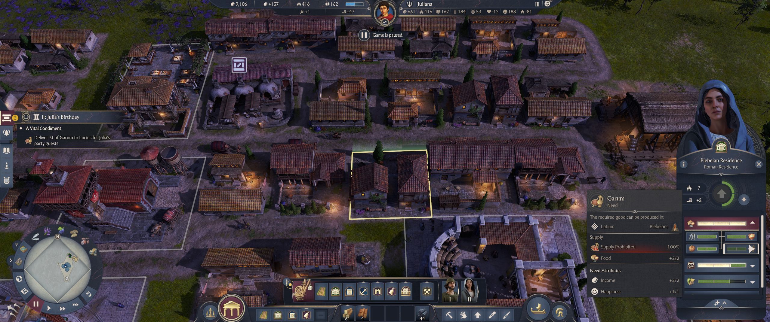 In the mission description, the game advises you to halt the consumption of garum until you have collected five tons. To do this, you need to click on any plebeian residence and enter the food tab. There, you will see all the types of food that the plebeians consume. Click on garum to stop its consumption. From now on, your plebeians will no longer eat garum until you resume consumption in the same way. You only need to set this in a single household - halting the consumption of garum by a single plebeian will automatically stop it for all other plebeians as well.