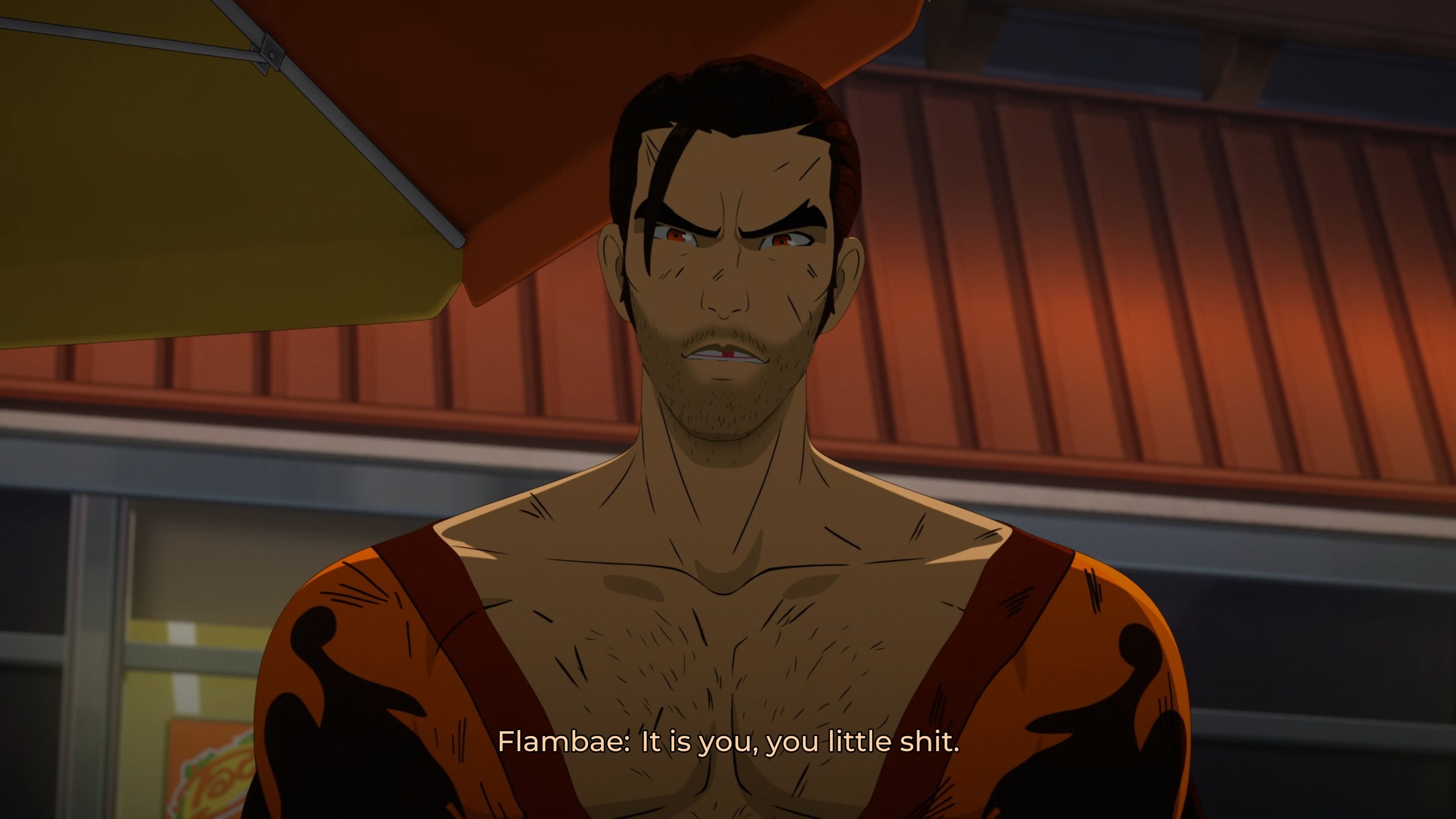 As I have mentioned, Flambae will come back. He will come late for the party in your flat at the end of Episode 6. He will hit you as soon as you open the door, though. In the end, he seems to be fine with you as a Mecha Man and you will cooperate just fine from this point.