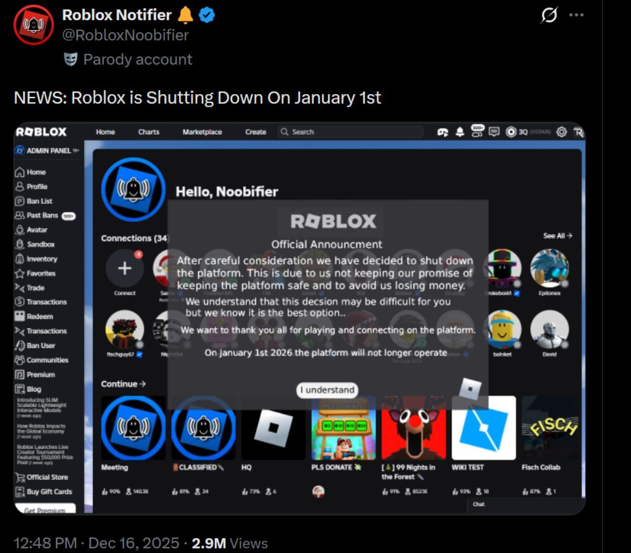 Why people keep believing Roblox is shutting down. It’s just another joke, yet somehow it spreads fast enough that some folks panic before checking the source.