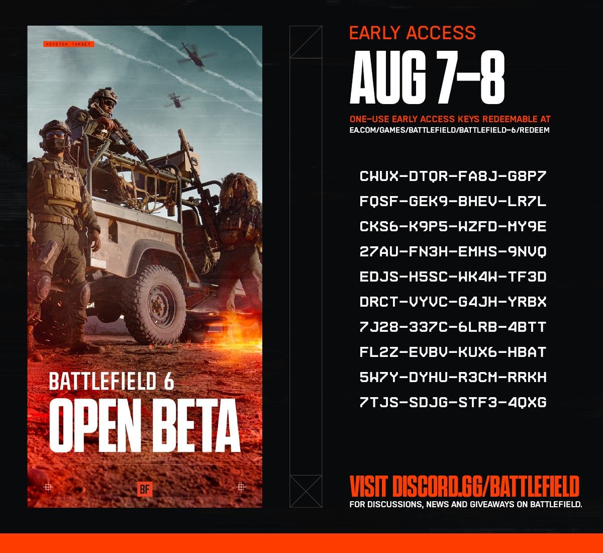 Watching Twitch streamers is not the only way to get the Battlefield 6 Early Access code. There is one more. A few hours ago, developers announced a Discord event. If you observe this channel, on the official Discord, you may be lucky enough the get the BF6 Beta key sooner than others. From time-to-time developers share pictures with codes there. They have 300+ to give. However, as in the case of Twitch drops, you need to be fast enough because it is a race, “first come, first served.”